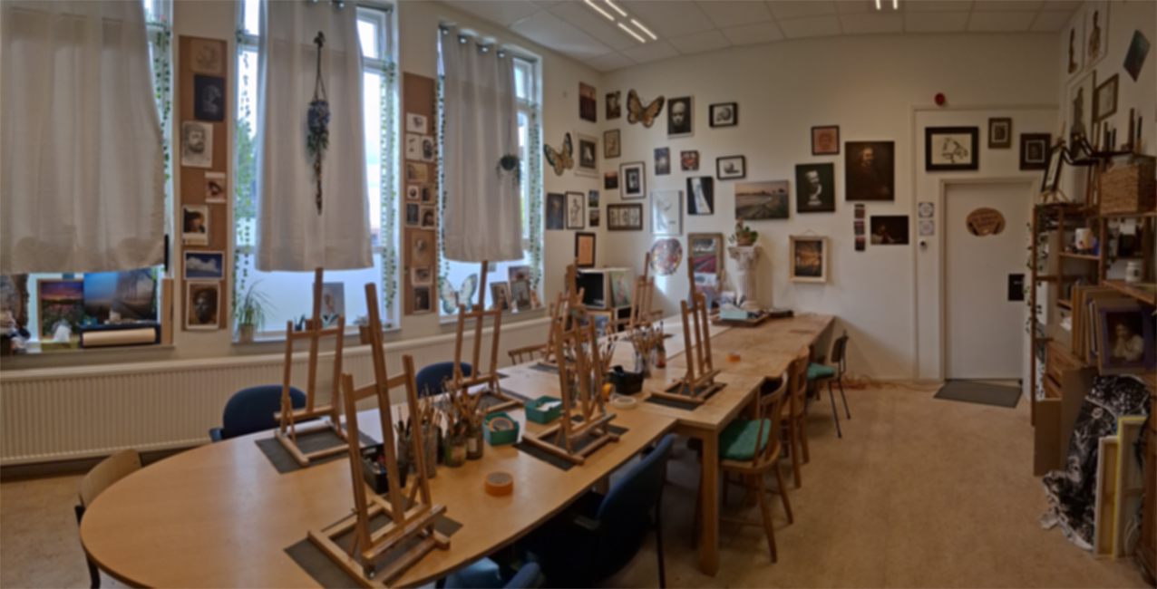 Het atelier van Vlinderlin en Schilderschool De Scheve Schilder.